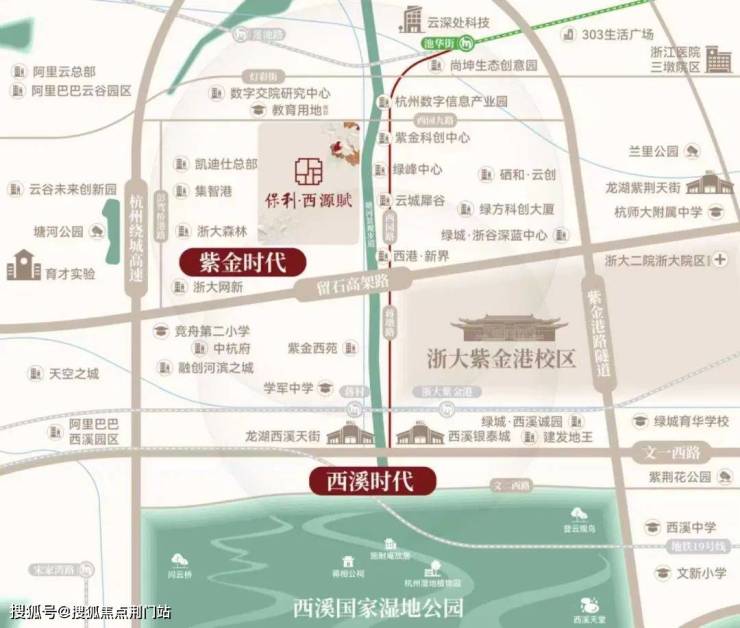 它就在浙大紫金港校区边上,被同一条蒋墩路串联了起来。一路往南,是朝气蓬勃的百年名校,是人才济济的西湖科技园,是华贵的城西豪宅区,是西溪天街、学军中学、西溪湿地……一路的高能集结。