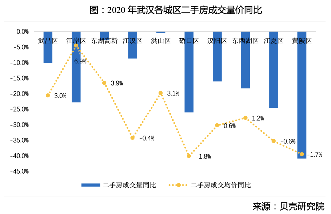 而且在价格层面,2020年武汉二手房成交均价同比上涨了2.2%,幅度不大,但却是一个很重要的信号。
