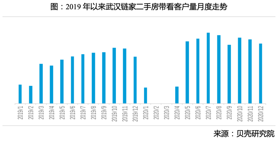 我们看到,4月上旬武汉解禁,5月二手房带看客户量暴增2.6倍。