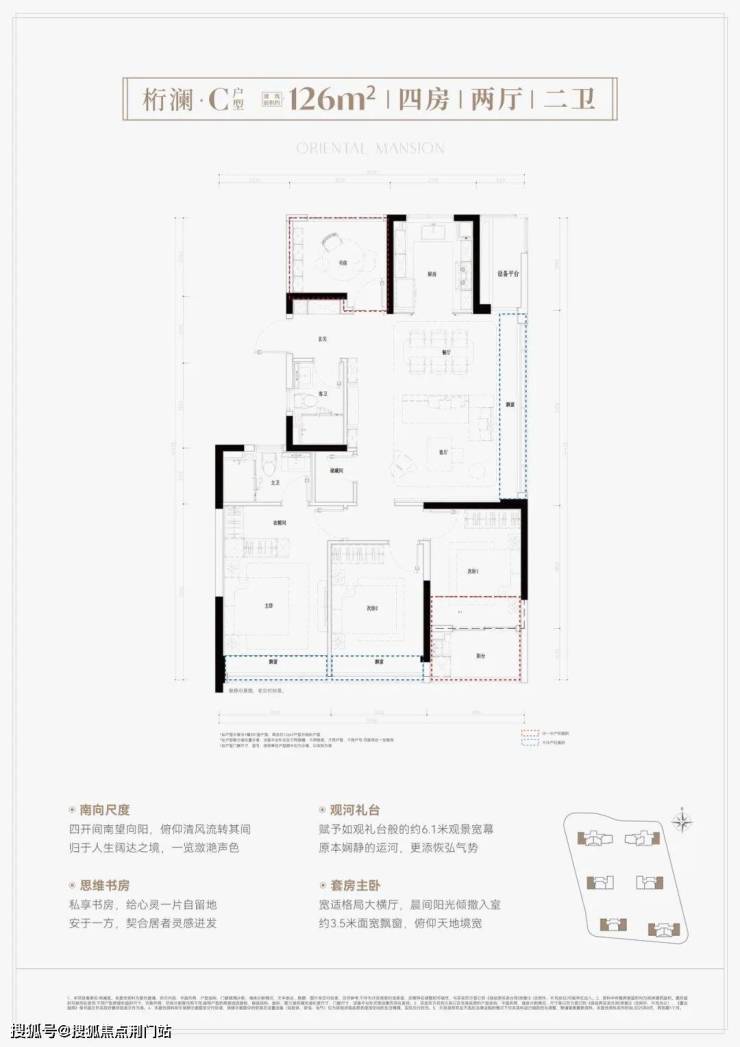 建面约126方户型:大边厅+南向的阳台,还有大套房,内含卫生间以及衣帽间,再加上独立的储藏室,收纳空间满分。