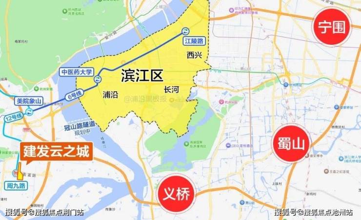 通过12号线可换乘6号线、3号线等,5站到之江文化中心,9站到滨江宝龙城。周边还有彩虹快速路、紫之隧道,远期还规划了三条跨江隧道,进一步提升交通便利性。