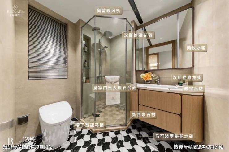 卫生间方面,主卫配了松下智能马桶、唯宝台盆、汉斯格雅龙头和恒温花洒,镜柜里还嵌了一个美妆冰箱。客卫配的是摩轻盈智能马桶。