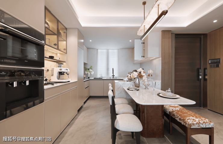 在厨房,燃气探测器与水浸传感器实时守护厨房安全,异常即时告警至手机,将安全隐患阻隔于未然;客餐厅及主卧预装智能屏一键调控,更预留了强大的后装升级接口,将与您的需求一同成长。