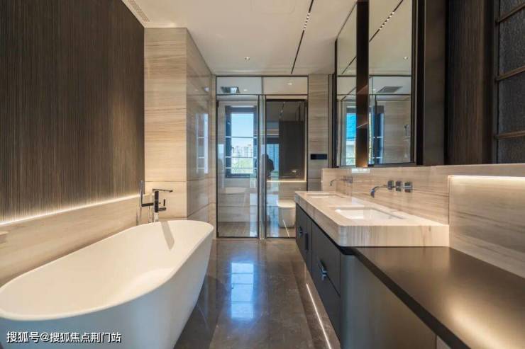 约43平的豪华主卧,顶别人家3个房间的大小,将衣帽区、卫生间、卧室做“三分区”独立设计,极致的享受、私密性拉满。如此阔绰的空间使用和布局,小胖之前多在别墅户型里见到。