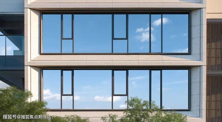 在近人尺度使用沉香米黄石材,以石材的厚重与质感彰显归家的仪式;2层以上采取仿石铝板,以几十种花纹进行拼接,模拟石材分缝,形成方正有序的凹凸进退关系,强化立面的光影效果,既有石材的质感,又实现了更强的外立面造型。
