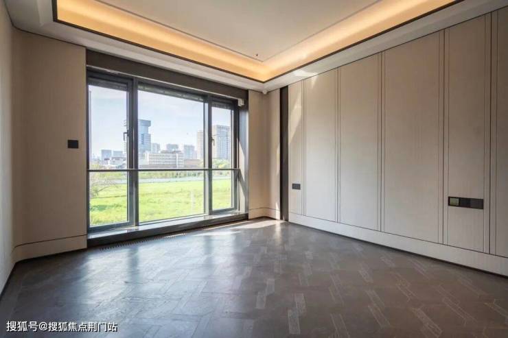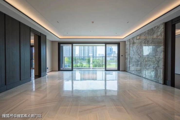 打开户内门往里走,南向开间约18米,南北通透,全落地窗设计,豪宅感十足。