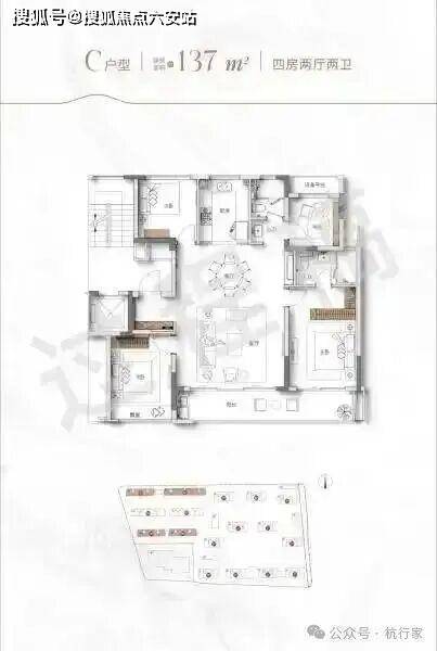 纯改善定位:全盘110㎡起,主力户型116-139㎡四房(占比超80%),一梯一户设计。