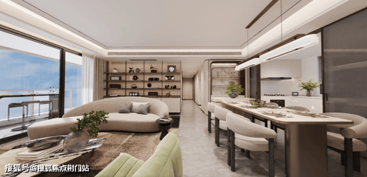 LDKB一体化布局: 餐客厅、半开放式厨房与阳台无缝融合,打破空间壁垒,拓展核心区的视觉与功能边界。烹饪时能照看客厅的孩子,聚会时可实现美食与畅谈同步,让家庭互动更无间 ,打造升维的 “场域社交中心”。
