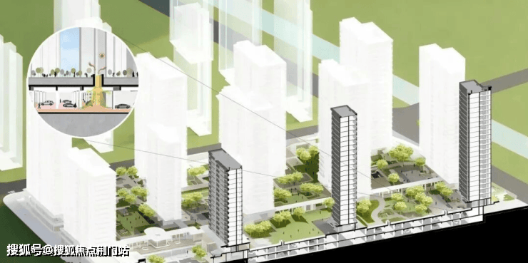 为彻底消融城市与社区的界限,项目以“超级底盘”重构社区基座。通过抬高地库、整合车站与商业配套,将地下空间转化为多功能垂直枢纽。