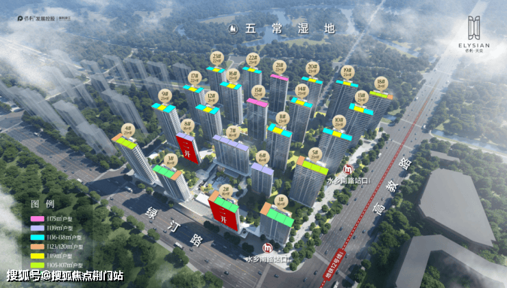 项目位于杭州余杭区高教路与绿汀路交汇处,占地82657㎡,总建筑面积283529㎡,容积率2.4,绿化率35%,规划16-23层高层住宅。项目配备4.3米挑高架空层,标准层高3-3.1米。
