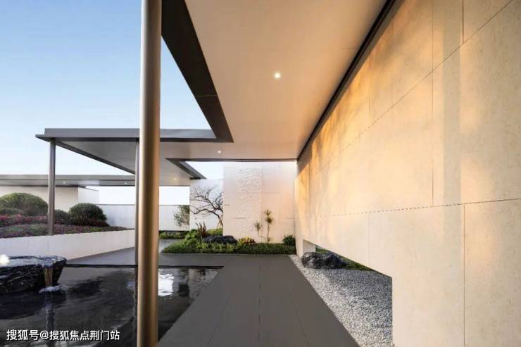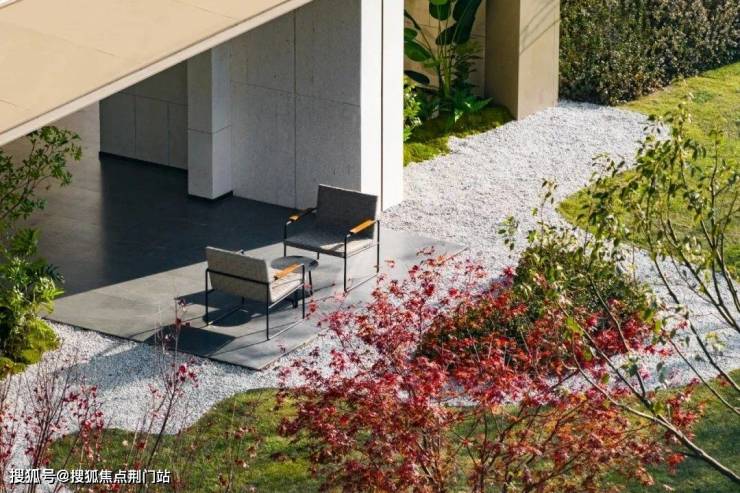 因为它最窄约2.6米,最宽约7.8米。窄处只供通行,宽处却嵌入石质景墙、涌泉和造型树池,摆上沙发小几,时而化为镜池旁的户外会客厅,时而变身冥想静观的小憩处。