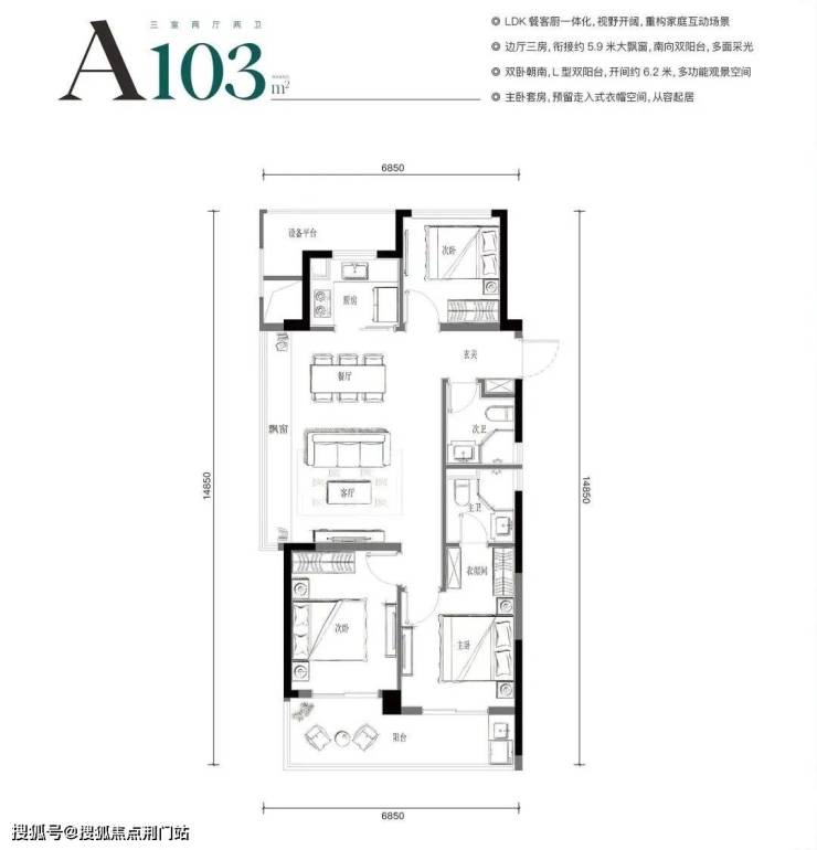 约103㎡在其他楼盘只能买到中间套,但在月琉璃,是带约5.9米大边厅的“派对级边套”。同事看完样板房直感慨,同样的面积,比她买的新房大多了。
