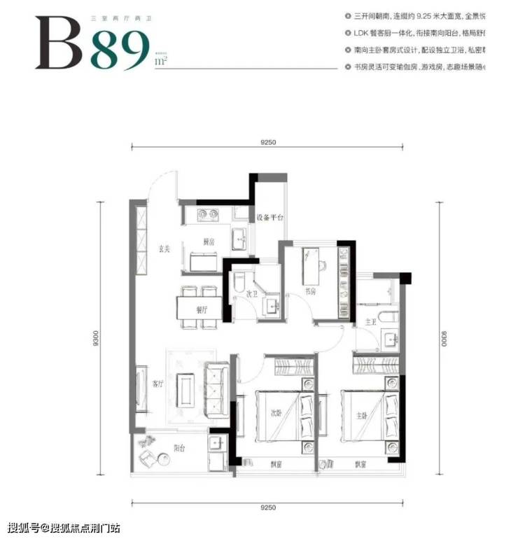 月琉璃没有随大流主打100多㎡三房,而是重塑经典的89㎡三房两卫,三开间朝南+双飘窗布局,厨房还能放下双开门冰箱。