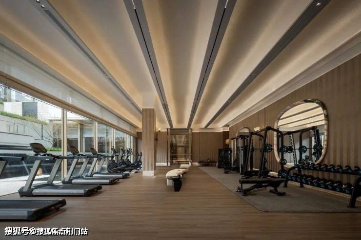 开阔场域内,跑步机阵列与绿植幕墙形成视觉韵律,以典雅东方美学为基底,融合现代奢华设计语言,几何线条勾勒刚柔并济的视觉层次,暗合保龄球运动中力与美的平衡哲学。