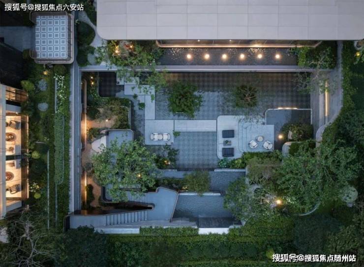 小区最大亮点是打造了下沉式庭院与下沉式会所,位于生活馆与后场庭院之间,打造超7.5米的高差的台地花园。运用三层叠水、四季花木、无边水池等多种造景手法,自然气息扑面而来。这种立体游园设计,使地上地下皆成庭园,让业主每次归家都成为一场心灵旅行。