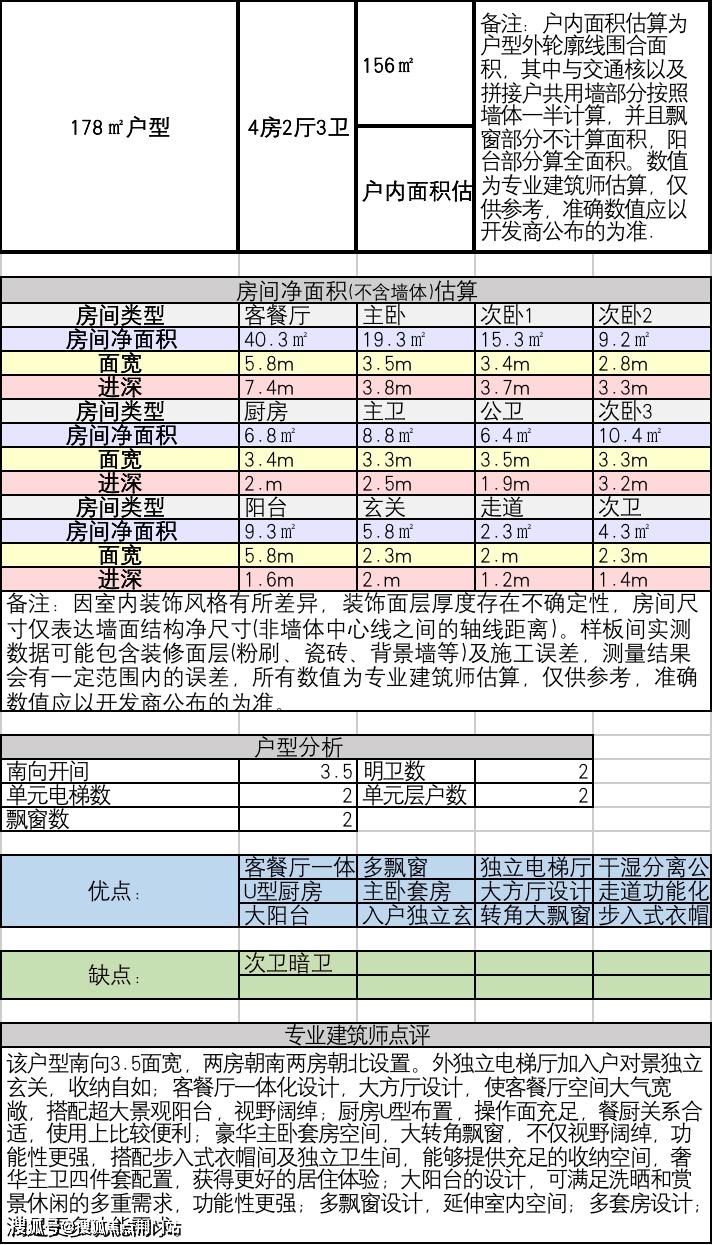 3.建面约178方4房2厅3卫: