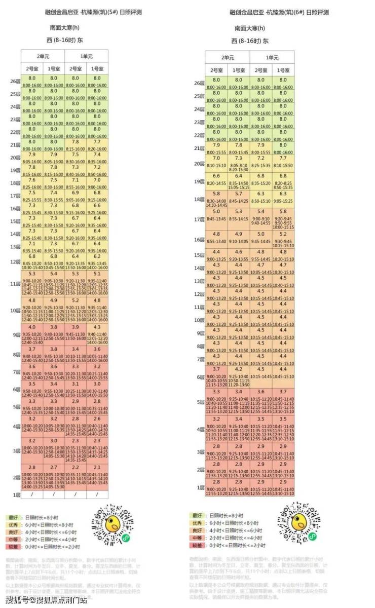 杭臻源的日照数据至少也能满足日常基本需求,首开的5、6#,低楼层日照从6层左右开始有改善,东西侧房源日照差别很小,在日照时长的选择上不必太过担忧。