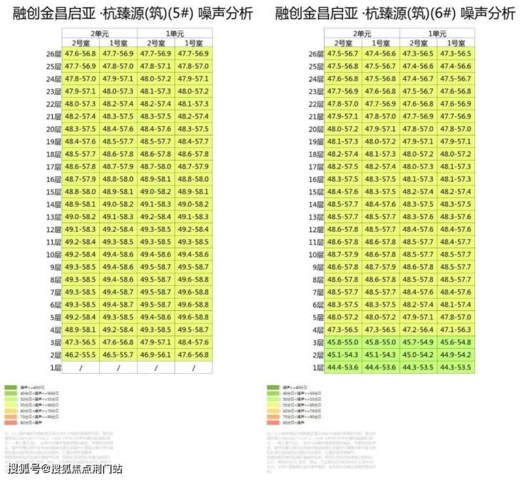 根据杭臻源的噪声建模评测数据,2幢楼整体噪声数据表现比较优秀,5、6#处于北侧,受到主干道的影响比较小,噪音最高仅在58dB左右,对生活的影响比较小。