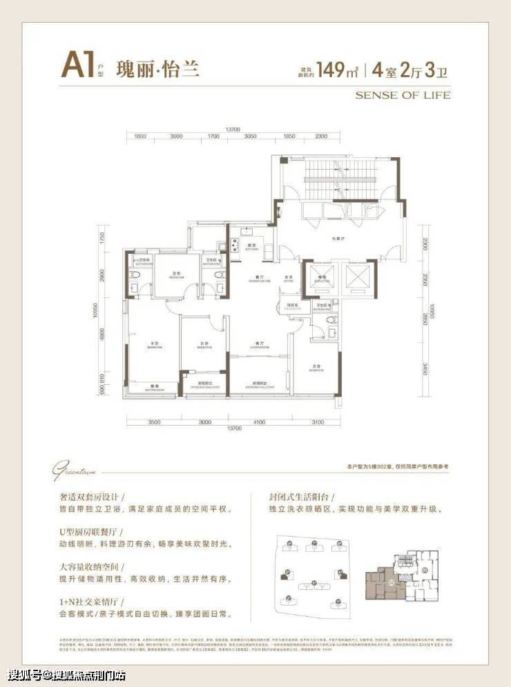加上南向 约13.7米的超大面宽,尺度感比市面上多数160方户型还要阔绰。