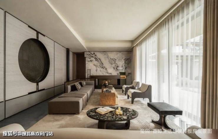 玺园·香璋由著名建筑设计师gad张微执笔,取法宋代郭熙的“三远论”,巧妙运用石材、玻璃、铝板等现代材质,带来层次丰富的视觉体验: