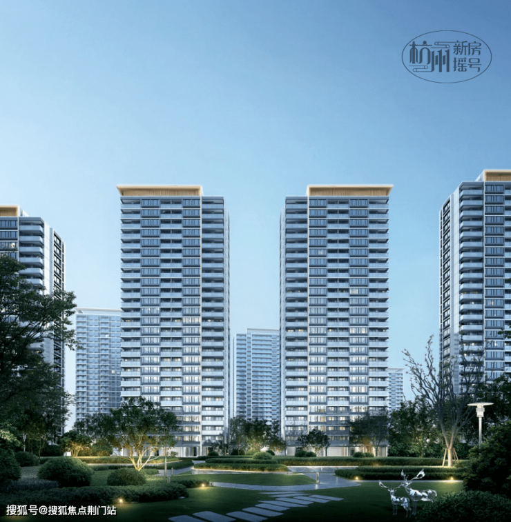 大围合式的建筑布局,谦逊地退位于自然,超70m楼间距 , 为自然留下更多的可能性;近万方的中心庭院,茂盛生长;湖畔度假花园,森林花园,童趣乐园,禅林闲庭等,一个个花园串联起整座园区的生活日常。四面大面积铝板建筑外立面,顶部点缀金色“皇冠”造型,打造湖区美学封面。