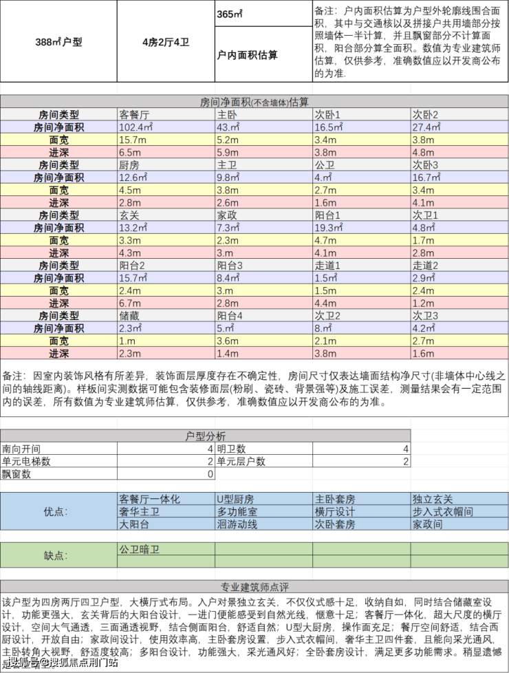 1、建面约238方:客餐厅大约55个平方,两梯两户,每户的客餐厅阳台都“挂出去”,视野会很棒,有独立的家政空间和公卫,就是南次卧11.4平方不算大,上厕所得穿过走道-玄关-客餐厅-家政空间才能到公卫……