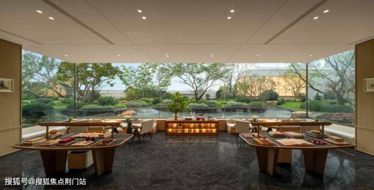 它采用奥体罕见的双水院系统。一条约210米长的超长园林轴,用松林、川流、秘境的三段式叙事,带来迂回的山水境界。