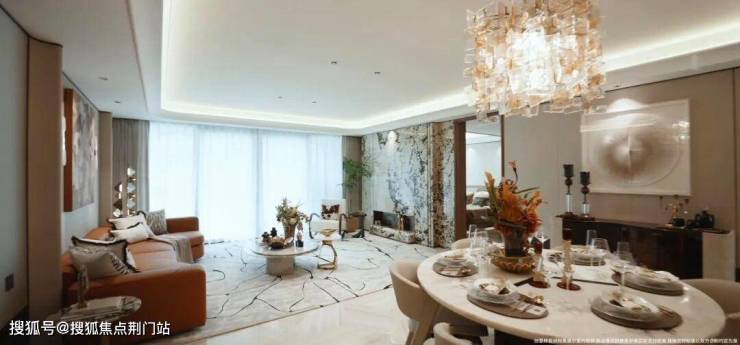 推开门即见近50㎡的餐客厅,无论是传统家庭钟爱的6人位圆桌,还是年轻人追求的极简长桌,都能妥善放置。