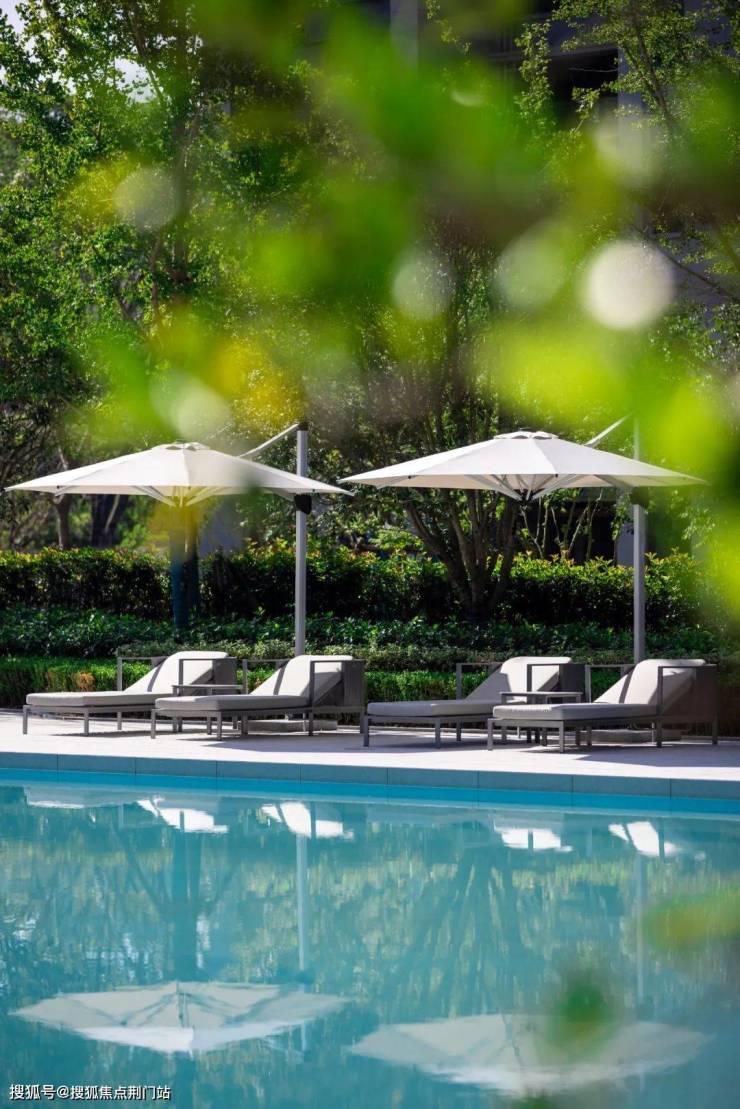 在蔚蓝的天空下,景观戏水池与天空融为一体,构成清新的“水天”意境。业主家人们可以带着孩子,在这里感受夏日的清新与活力。