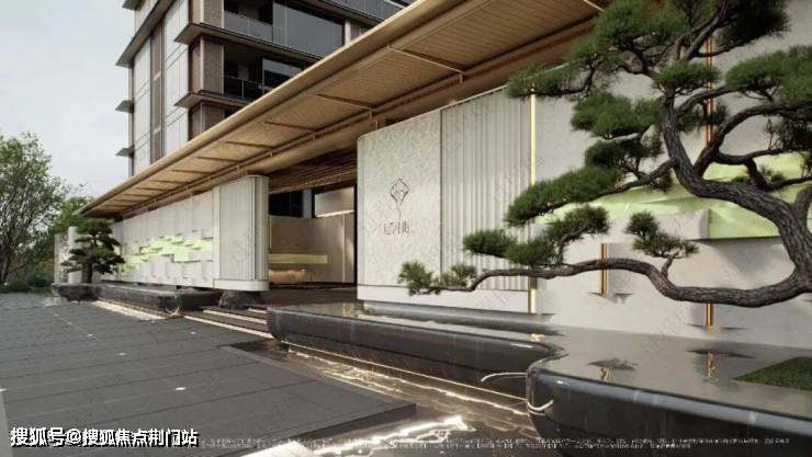 项目大门的“含石量”极高,还有水景和名贵树种搭配,立面的南面则是大面积玻璃幕墙为主,侧面主要用材应该是石材。