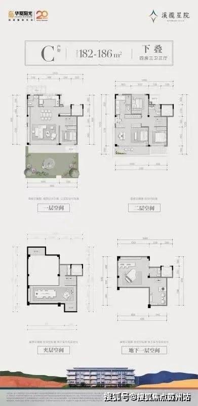 以C户型下叠为例,约18.6m南向大面宽(双层),无界风景延伸入室;270°环幕采光,尽情沐浴暖阳。在珍存的低密土地上,华夏·溪揽星院以上下双叠设计,上叠露台为伴,下叠庭院相接,双层地下室空间规划,营造更为纯粹的墅居生活享受。