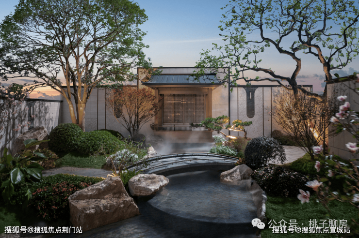 园林以西湖郭庄为蓝本,打造“一轴两园四坊八巷十景”景观体系,引入百年古树、近百种绿植,营造江南美学画卷般的居住环境。