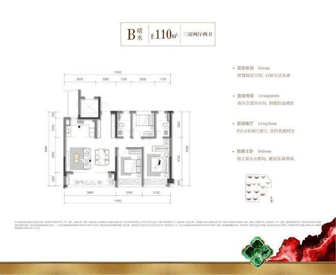 建面约110㎡惬意三房则重塑了市面上同等户型南向尺度的可能,带来四开间朝南的进阶体验,约5.8米阔尺餐客厅,从容包揽全家人的生活意趣,更有双侧收纳,兼具生活美学与实用主义。