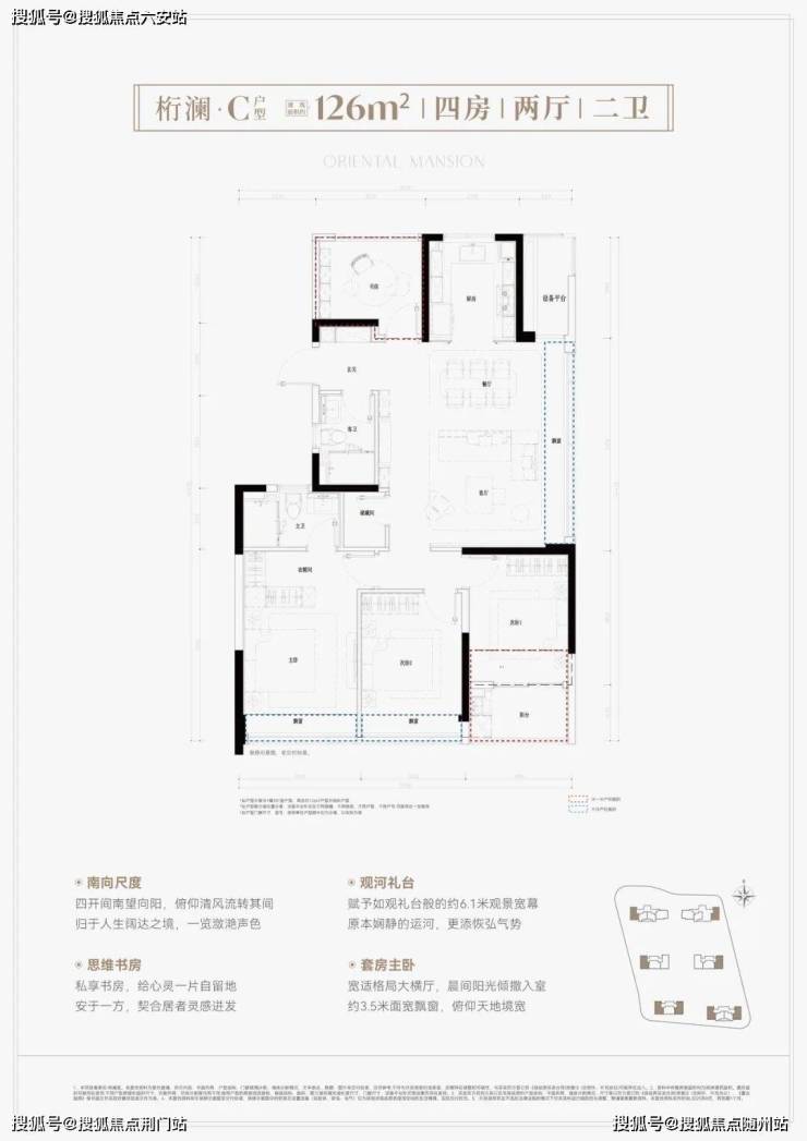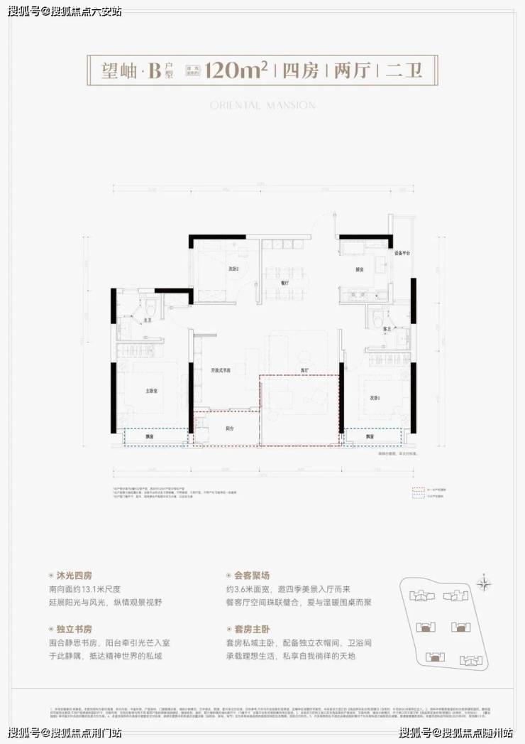 建面约120平方米户型则设计了四房且四开间朝南,南向采面极佳。而建面约139平方米大户型则打造四房两厅两卫,分为横竖两款,全部为边套,两梯两户设计。该户型得房率高达约93%,南向3个卧室,采光优良,客厅面积达到约37平方米,充分满足二胎家庭或三代同堂的居住需求。