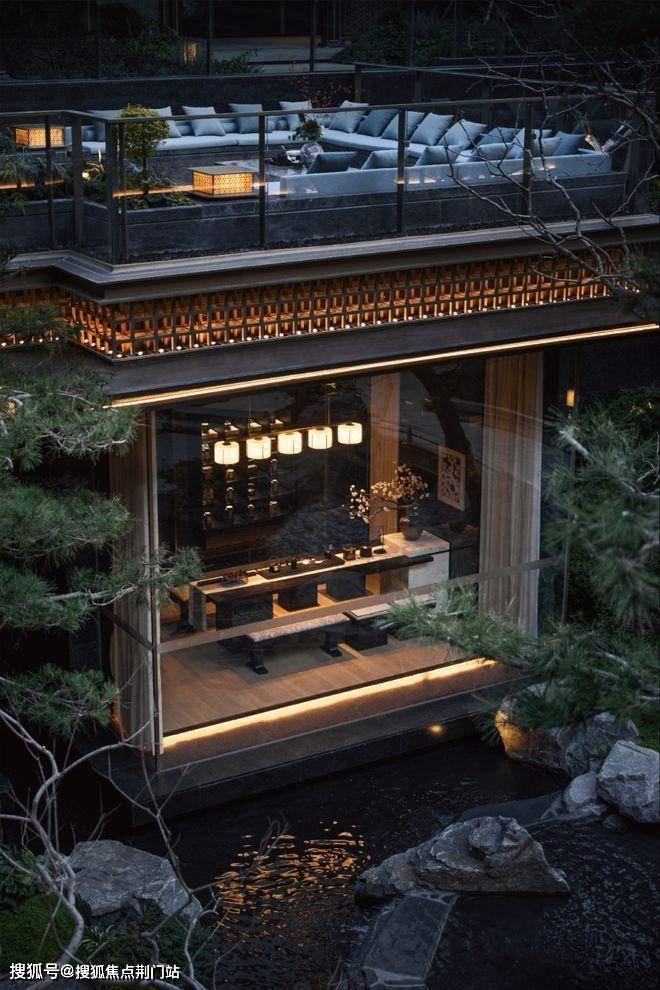 漫步于光影交织的幽静庭院,您将踏入一方充满诗意的天地。潺潺流水映照着婆娑树影,挺拔树姿为这片空间注入向上的生机,纵向延伸出无限的视觉张力。这座下沉庭院,不仅拉近了建筑与自然的情感共鸣,更使室内与景观紧密相连、和谐相融。每一扇窗户,都犹如框中的一幅生动山水画。