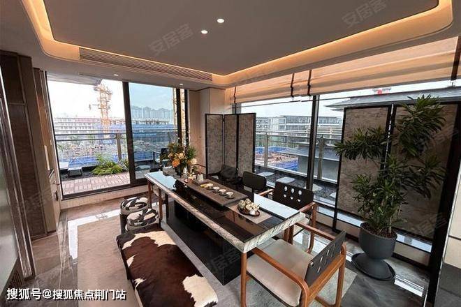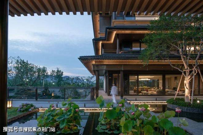 建筑立面:古今交融的诗意表达:外立面以香槟金铝板为基调,搭配蓝眼睛石材与玻璃幕墙,融合传统歇山重檐、纳福悬鱼等元素,既保留宋式建筑的对称美学,又赋予现代建筑的轻盈通透。合院组团采用三面庭院设计,L型景观面与环绕式檐廊,将超山梅影、丁山湖光引入每一扇窗景!
