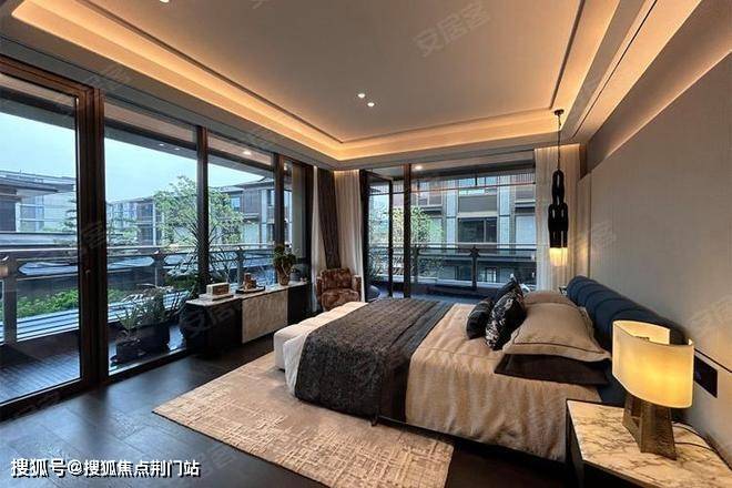 中间套300㎡地上三层双主卧套房设计,每间卧室连通露台或庭院;L型景观面实现“移步异景”。边套340㎡顶层阳光房与私家电梯入户,主卧独占整层,躺瞰超山梅花盛放,地下室可拓展为私人艺术馆。