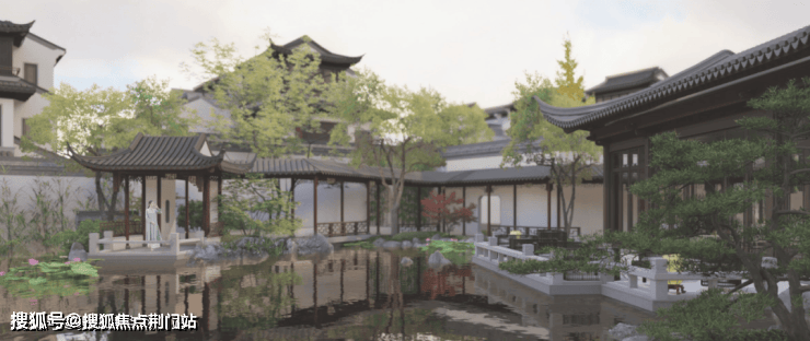 项目的园林,借鉴了苏州拙政园、东京旧芝离宫等的造园灵感,并糅合九溪烟树、西溪湿地等,形成「一溪两园三十景」把韵味悠长的诗境,在项目中再现。