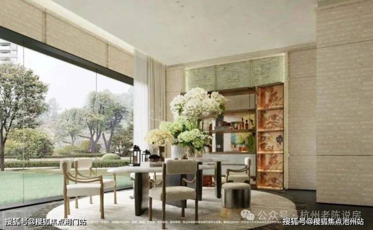 归家礼序:奢阔门头+一轴八境园林:打造约63米宽、9.1米高的超全画幅恢宏门庭,融合金属格栅与天然奢石,以酒店级匠造标准诠释当代世家气派;园林布局取意三大宋画,融合杭州山水精粹,打造“一轴八境”景观,通过假山、叠水、屏风等元素,再现《四景山水图》的移步易景之美,窗前皆有景可赏。