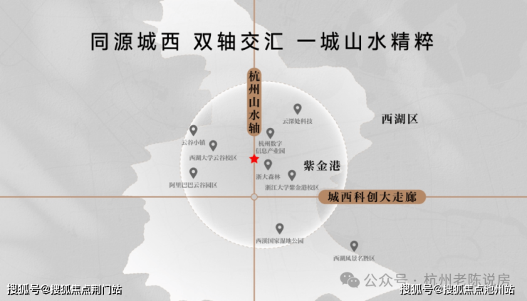 【保利置业·西源赋】是西湖、西溪以北绕城内与蒋村地王并存的唯二新盘。正处城西大走廊的起始点紫金港板块,东南约1.5km即为浙大紫金港校区,直线距离建设中的地铁4号线莲池站仅约660m。
