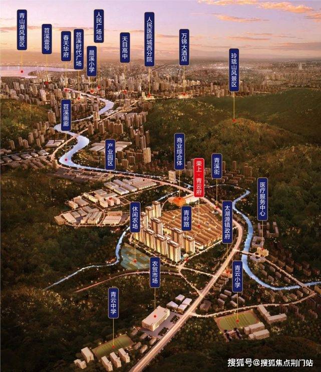 荣上·青云府,太湖源头、神龙川风景旅游渡假区、天目山风景区,三大风景名胜加持,荟萃如画风光。一脉苕溪入城,苕溪时代生活广场、人民医院城西分院、万华广场、人民广场、地铁16号线等锦城繁华触手可及。周边云集了镇政府、产业园区、自建商业体、镇中心幼儿园、青云小学……集萃城市都会生活圈。