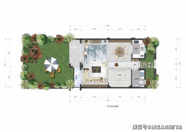 一层:私院会客厅● 独立景观餐厨空间,全开间、私家院景客厅,尊显大户风范● 左右双重私家院落,畅享大片绿色自由天地,细微处涵养情调生活!