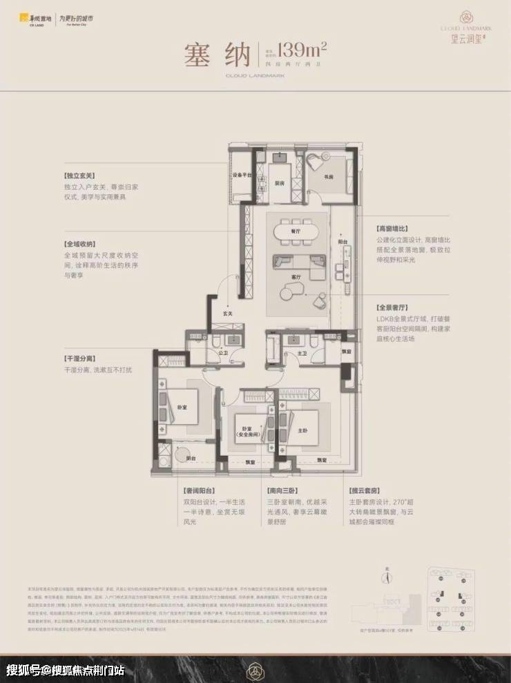 【奢阔面宽】约14米非凡面宽,奢阔南向四开间,舒展阳光奢居大境 【阔境阳台】南向约7米超大全景阳台,50%计容空间实现100%的无界体验