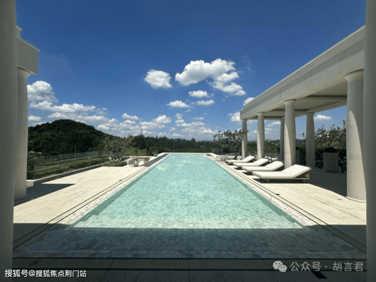 上面是地上会所,还有一个地下会所,层高8米多。层高一旦上去,许多功能空间就显得尤为大气,比如这个泳池,而且还做了屋顶采光。