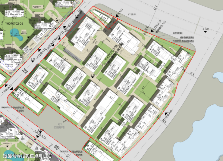 YH090702-06地块为住宅用地,规划打造12幢14—17层的高层住宅,小区内设有两处水池、下沉庭院、近1000㎡的集中绿地、超500㎡的体育健身用地。