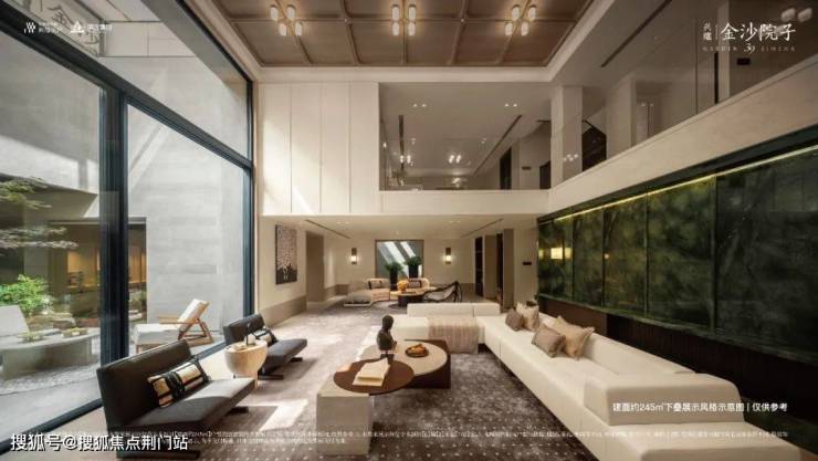 相比较纯低密项目,高低配的设置,让金沙院子拥有了那标志性的“镜面大水院”,可尽享庭院内约9000㎡的自然灵感花园和超2200㎡的特色水景空间。
