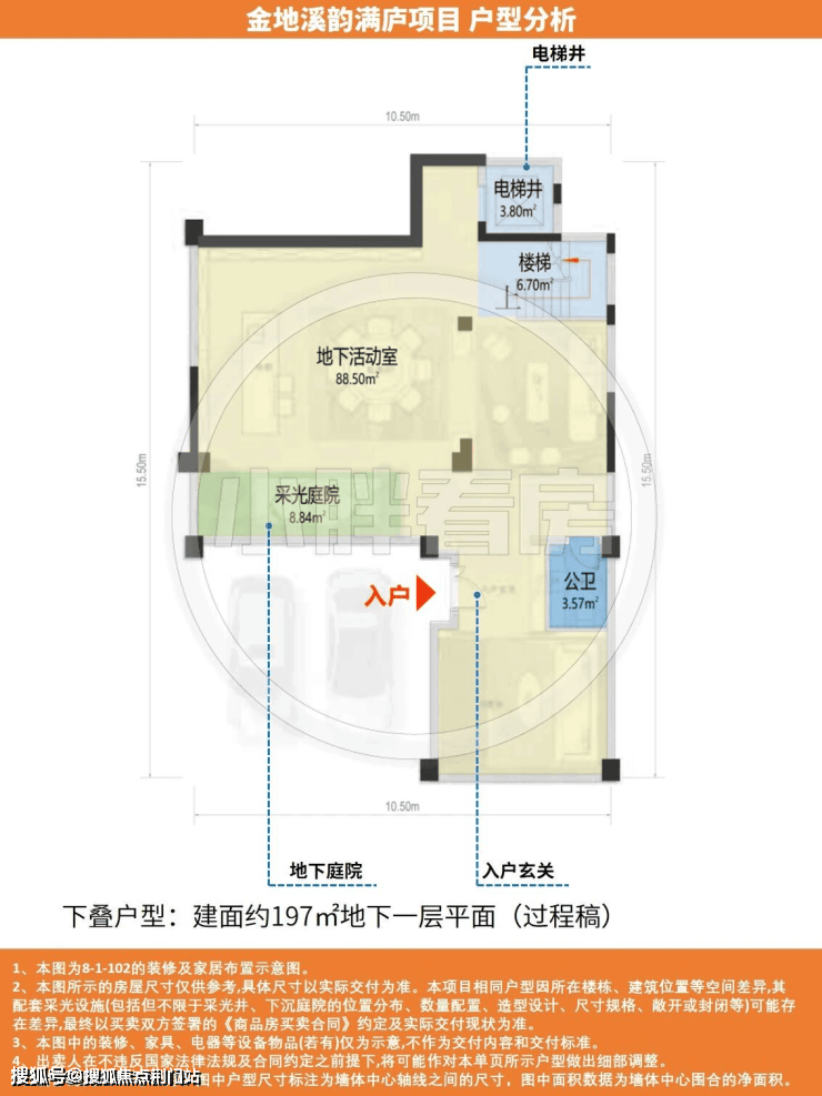 我们以主推的这款建面约197方下叠产品为例:建面被控制在200方以下,相比市面上普遍250方以上的叠墅产品,总价可以被压的更低,助力更多家庭以约600万级总价轻松上车叠墅的改善梦想。