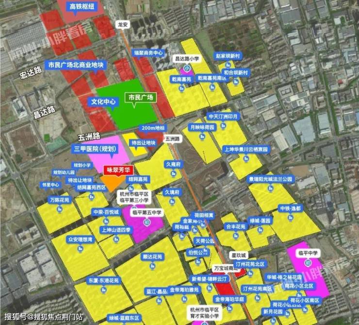 而咏翠芳华轩家门口的,就是五洲路站。站点的东侧为复星地块,西侧为曲江新鸥鹏地块,将打造出两个重量级的城市综合体(来源:复星蜂巢和曲江新鸥鹏in杭州微信公众号),宛若临平版“万象城”和“来福士”。
