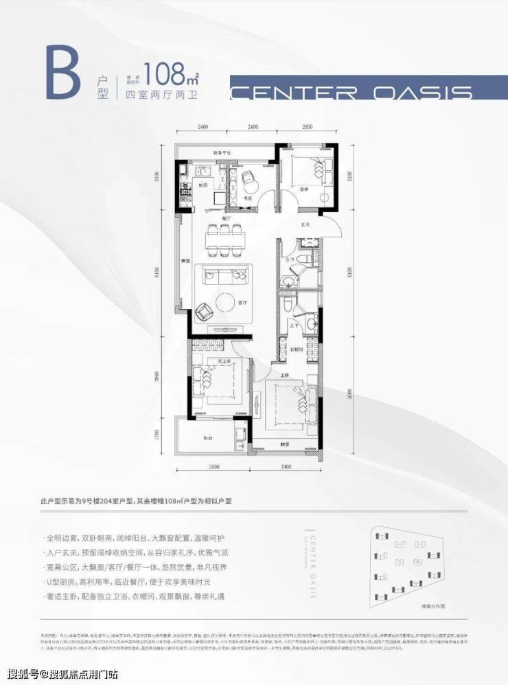 108方则直接设计成了四房两厅两卫的边套户型,带有飘窗的一体客餐厅,主卧套房带走入式衣帽间。这可是在其他项目上一般都需要120方左右才能出现的户型设计。