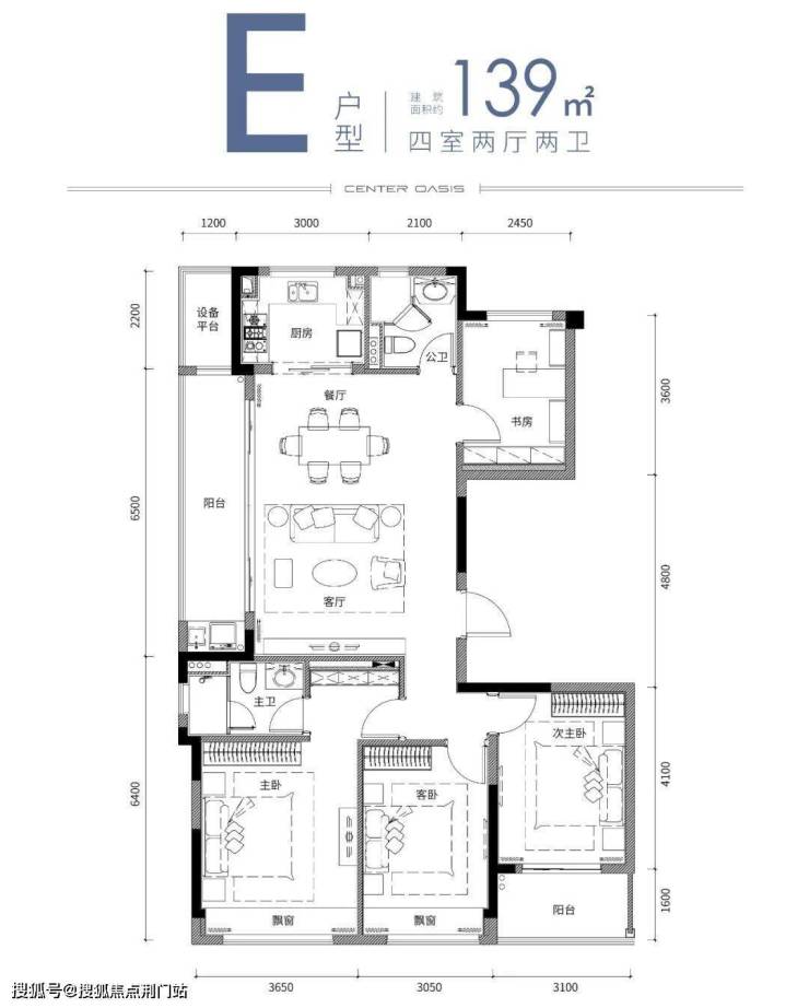 建筑面积约139方四房两厅两卫户型位于小区中央的楼王,一层仅两户。该户型和125方户型的不同之处在于各个功能间的的舒适度会更高些,且是三开间朝南,南向采光更足,还是双阳台的设计,晾晒、休闲功能可以更好的区分。